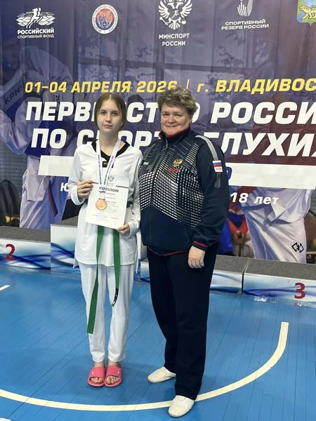 1 апреля дан старт первенству России по спорту глухих в спортивной дисциплине тхэквондо, которое проходит в г. Владивосток. Спортсменка областной спортивной школы по адаптивным видам спорта кандидат в мастера спорта по спорту глухих (тхэквондо) Листарова Дарья завоевала бронзовую медаль первенства России в своей весовой категории!